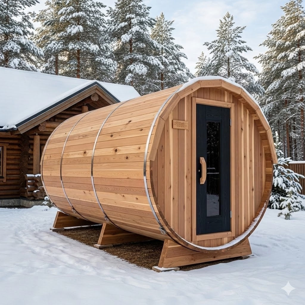 Nuestras saunas de barril de cedro fluido son las más grandes de la industria. Los fabricamos con una altura completa de 7' para espacio interior y altura adicionales e incluimos asientos de banco por su diseño modular, se puede ensamblar y desarmar muy rápidamente. El diseño Prefab Fluid Sauna utiliza el mismo diseño de bola y casquillo de tonelería por el que nos hemos hecho famosos y no utiliza tornillos. ¡Un juego de correas de acero inoxidable cepillado distingue a esta sauna de interior del resto! Las saunas de barril de cedro fluido vienen en muchos tamaños. ¡Perfecto para familiares y amigos! Pueden sentarse hasta 8 personas, con dos bancos cada uno con una altura diferente para satisfacer las necesidades de todos. ¡La altura de 7' proporciona mucho espacio para la cabeza y es la más alta de la industria!